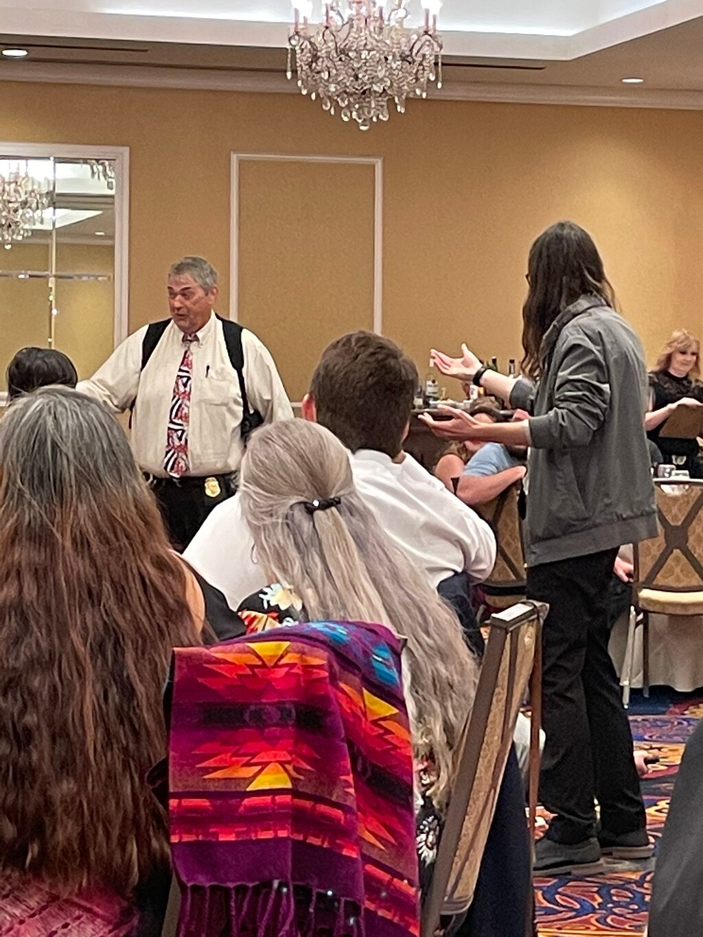 Our show is very different from traditional murder mystery dinner shows. We will hide non-costumed actors in the audience that are pretending to be part of the crowd. This results in a much more social and interactive evening than with other shows. Our shows are set during the present day and take place in real time. Over the course of the night, our costumed Detectives will uncover clues, interrogate audience members that may or may not be part of the show, and help everyone get closer to solving the mystery.