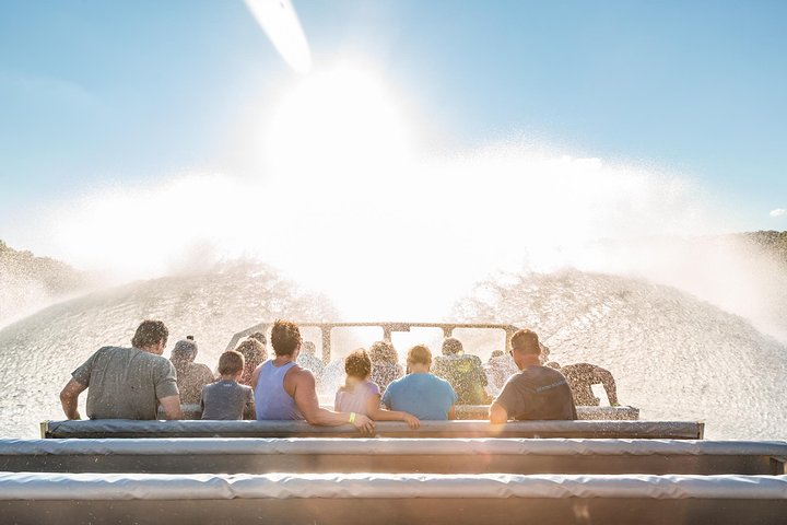 Your adventure tour departs from the world class Branson Landing shopping district. Hop on our Jet Boat and you're in for the adventure of a lifetime. Our coast guard certified captains will take you down historic Lake Taneycomo and along the way you'll be treated to the full range of maneuvers a triple engine Jet Boat can provide including bow dunks, 360 spins, power slides & more. It's not all thrill rides & maneuvers--along the way the captain will tell you stories of the Ozarks including history, folklore, and Ozarks wisdom gleaned from growing up in the spectacular surroundings you'll see along the way. This one hour tour takes you 14 miles total down & up Lake Taneycomo.